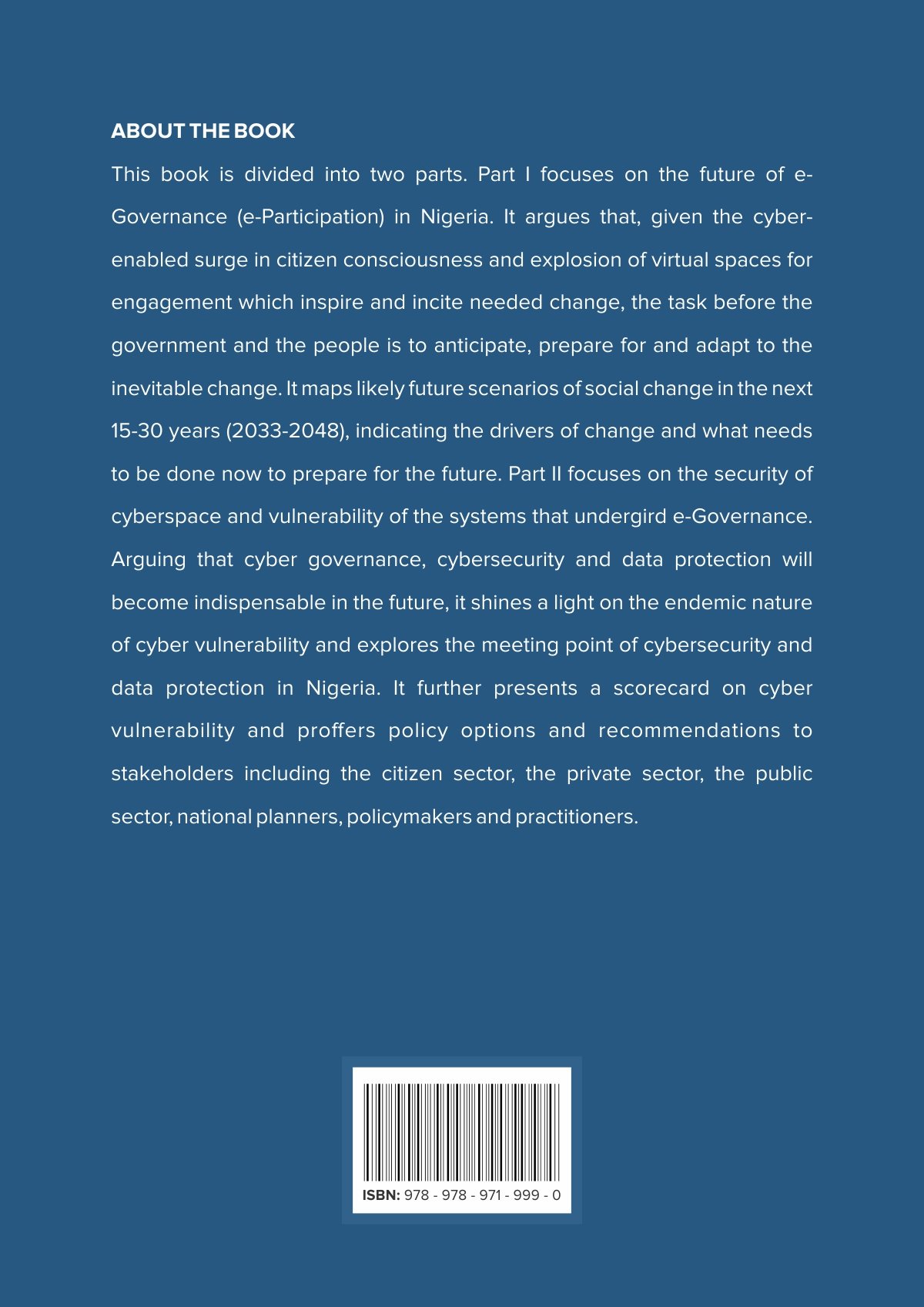 This book shines a light on the shifting dynamics of governance in Nigeria, the role of the internet in enabling the shift and our role in shaping the future. It also addresses the growing importance of cyberspace and why we must make it more secure now and for the future. It is divided into two parts. Part I focuses on the future of e-Governance (e-Participation) in Nigeria. It maps likely future scenarios of social change in the next 15-30 years (2033-2048), indicating the drivers of change and what needs to be done now to prepare for the future.